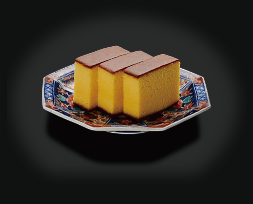 Products LineupThe name Gosanyaki Castella (literally five-three bake castella) is said tooriginate from the process using egg yolk and egg white at a ratio of 5:3rather than the usual 5:5, requiring a higher level of skill in baking.The process involves producing a foam through diligent mixing andendlessly raising and lowering the temperature during baking. Today,there are only a handful of people in Nagasaki with the skills to bake atrue Gosanyaki Castella.